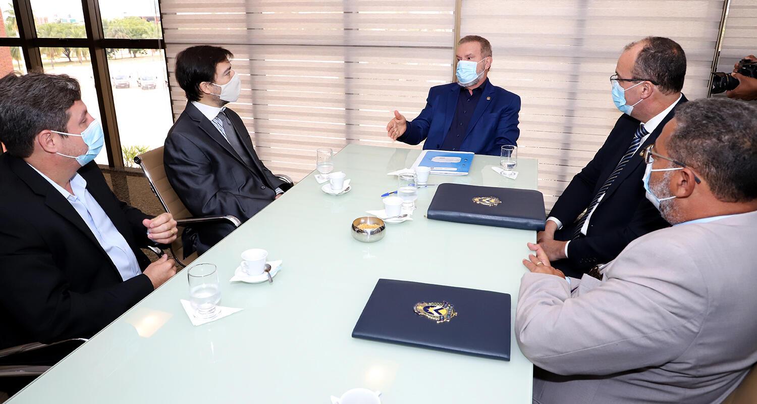 O governador do Estado do Tocantins, Mauro Carlesse, e o diretor de Alianças e Relações Institucionais da Azul Linhas Aéreas, Marcelo Bento Ribeiro, renovaram na manhã desta quarta-feira, 16, o Termo de Acordo de Regime Especial (Tare) referente à isenção fiscal sobre o combustível para aviação. A reunião de assinatura ocorreu no Palácio Araguaia e contou com a presença dos secretários de Estado da Fazenda, Sandro Armando; e da Indústria, Comércio e Serviços, Tom Lyra, e do gerente da Azul no Tocantins, Flávio Silva.
